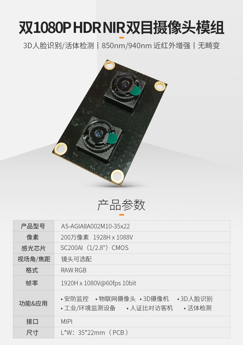 双目高清1080P人证比对访客机NIR HDR逆光识别SC200AI mipi摄像头模组