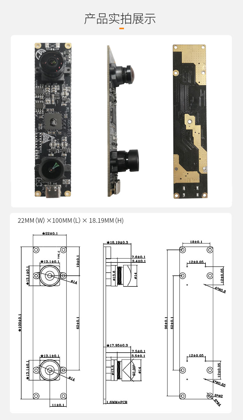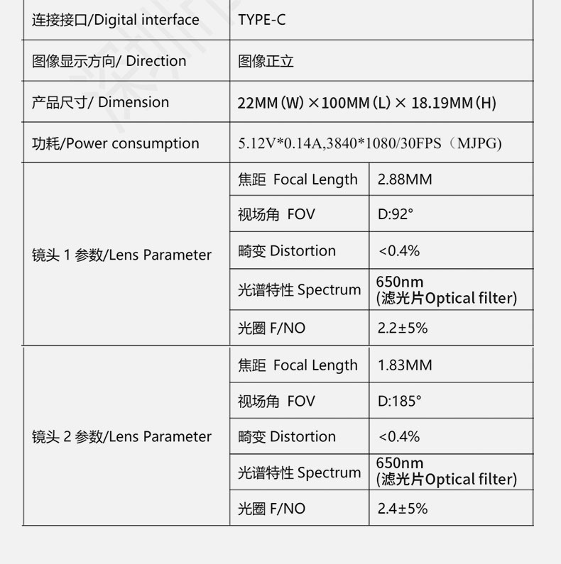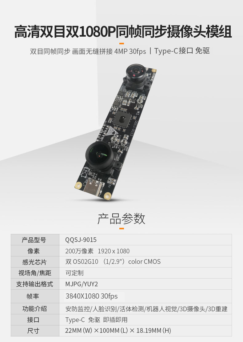 高清400万像素双1080P同帧同步OS02G10双目3D扫描打印机Type-C摄像头模组