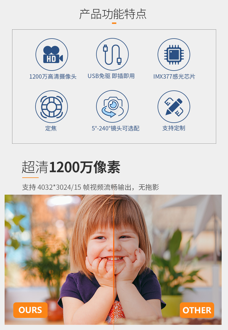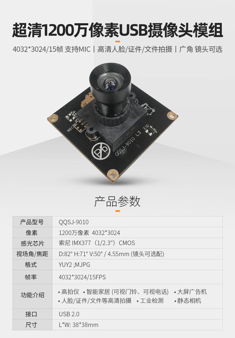 厂家1200万像素imx377 4K广角超清人脸拍照智能识别ai摄像头模组自动对焦/定焦可选