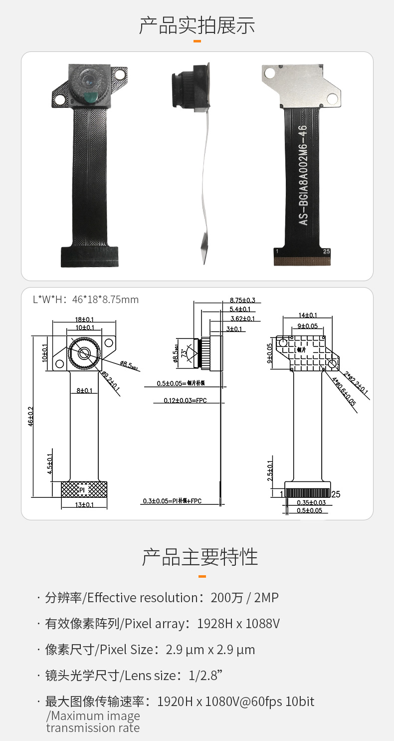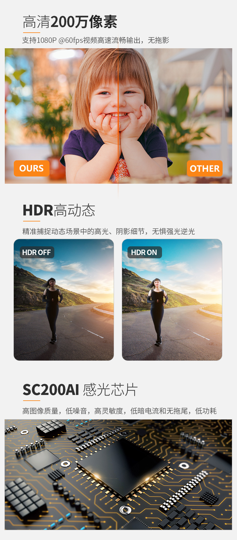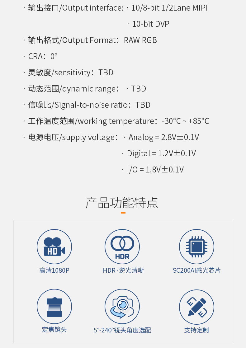 高清1080P 60fps NIR红外灵敏夜视记录仪HDR逆光识别mipi SC200AI摄像头模组