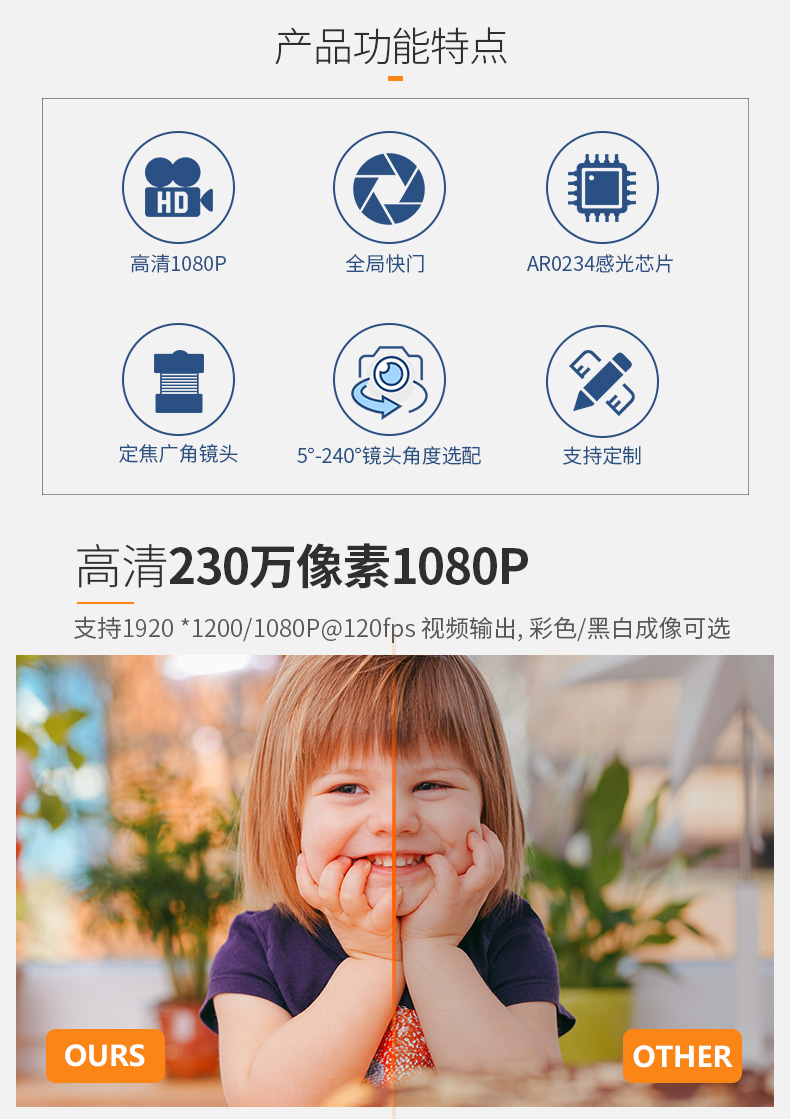 高清200万像素1080P 120帧fps彩色全局曝光mipi无人机AR0234摄像头模组