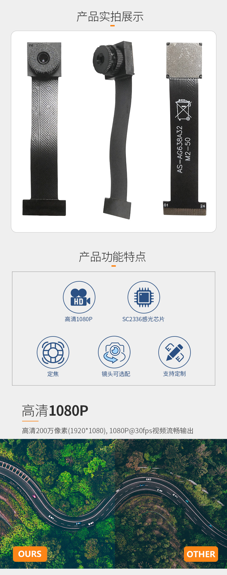 200w万像素高清1080P SC2336 MIPI无畸变机器人智能翻译笔摄像头模组