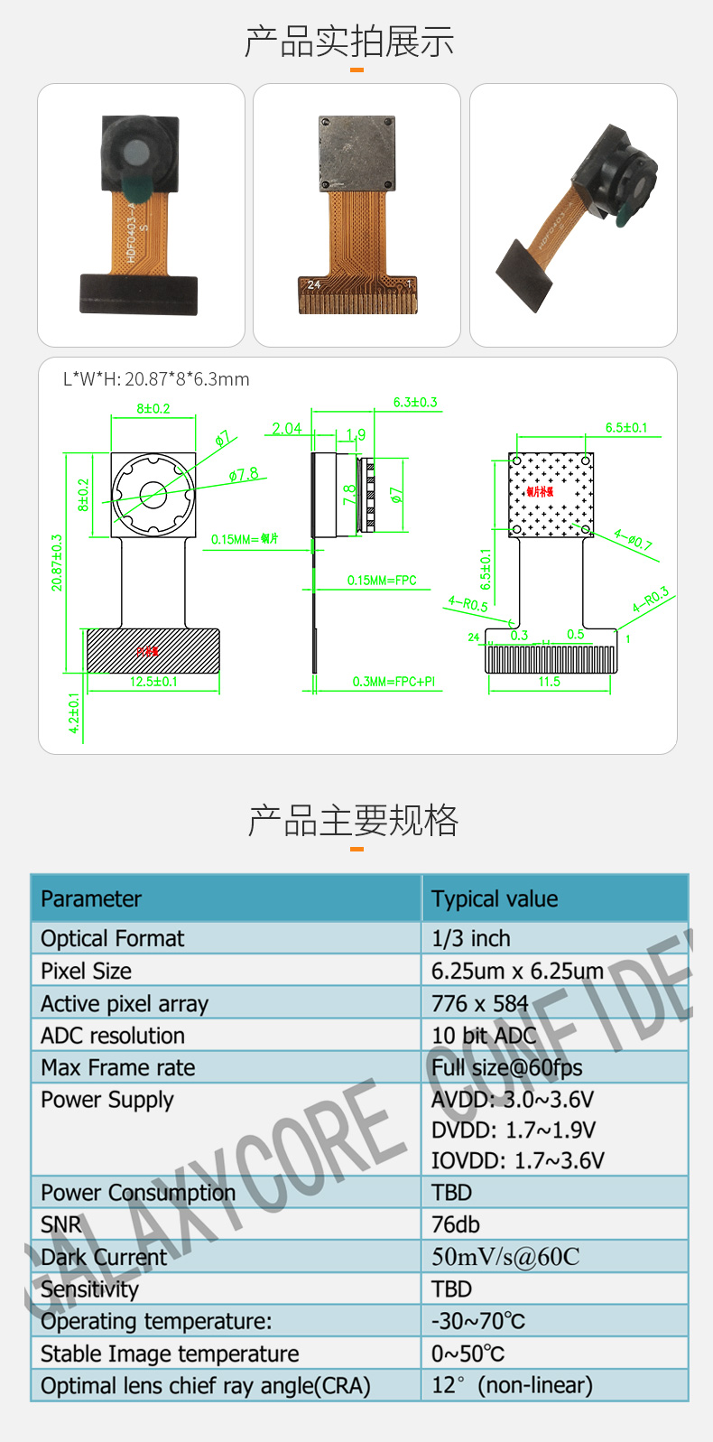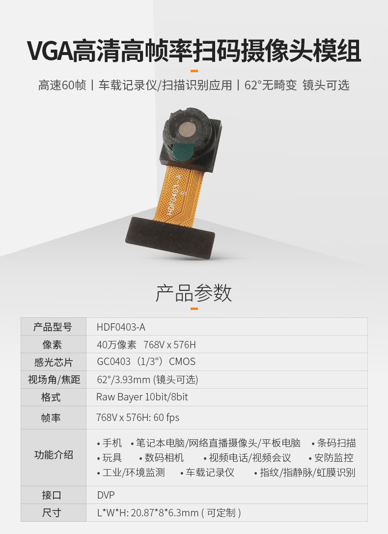 超低照度夜视效果好40万像素vga指静脉掌静脉识别GC0403 CMOS dvp摄像头模组
