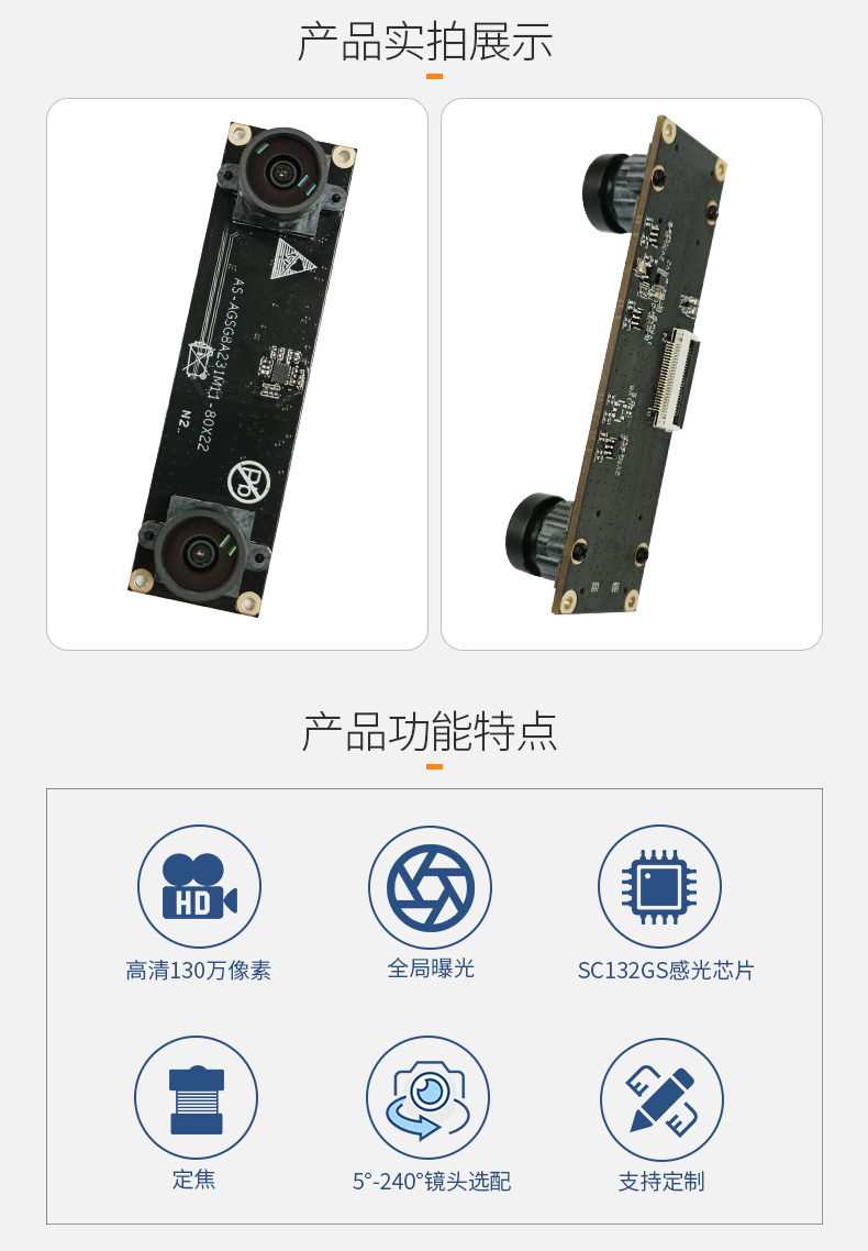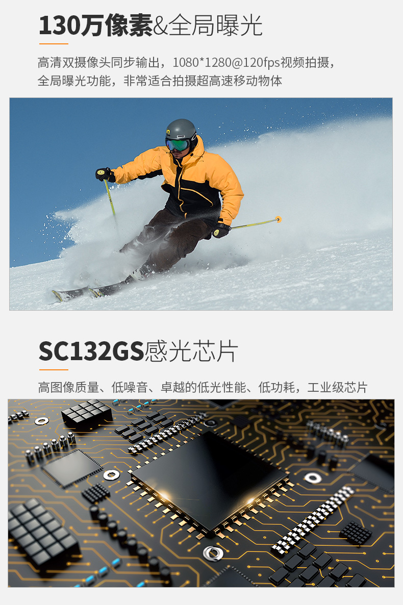 高清130万全局曝光双目同步120帧深度测距SC132GS NIR摄像头模组