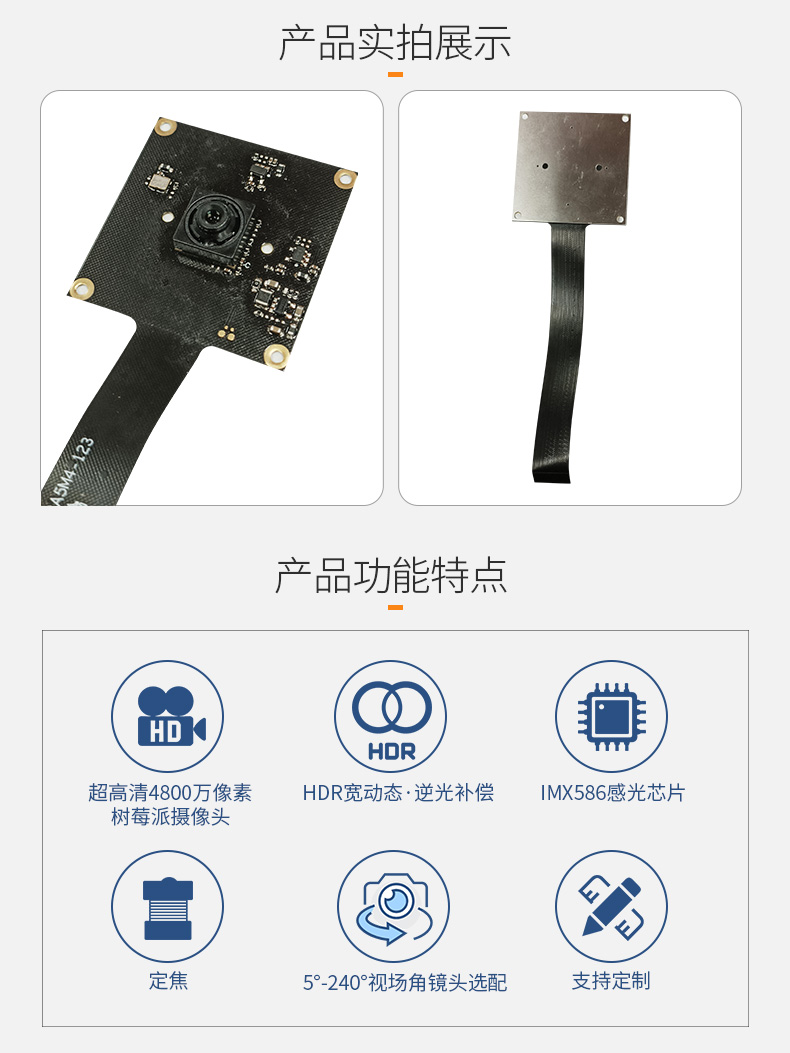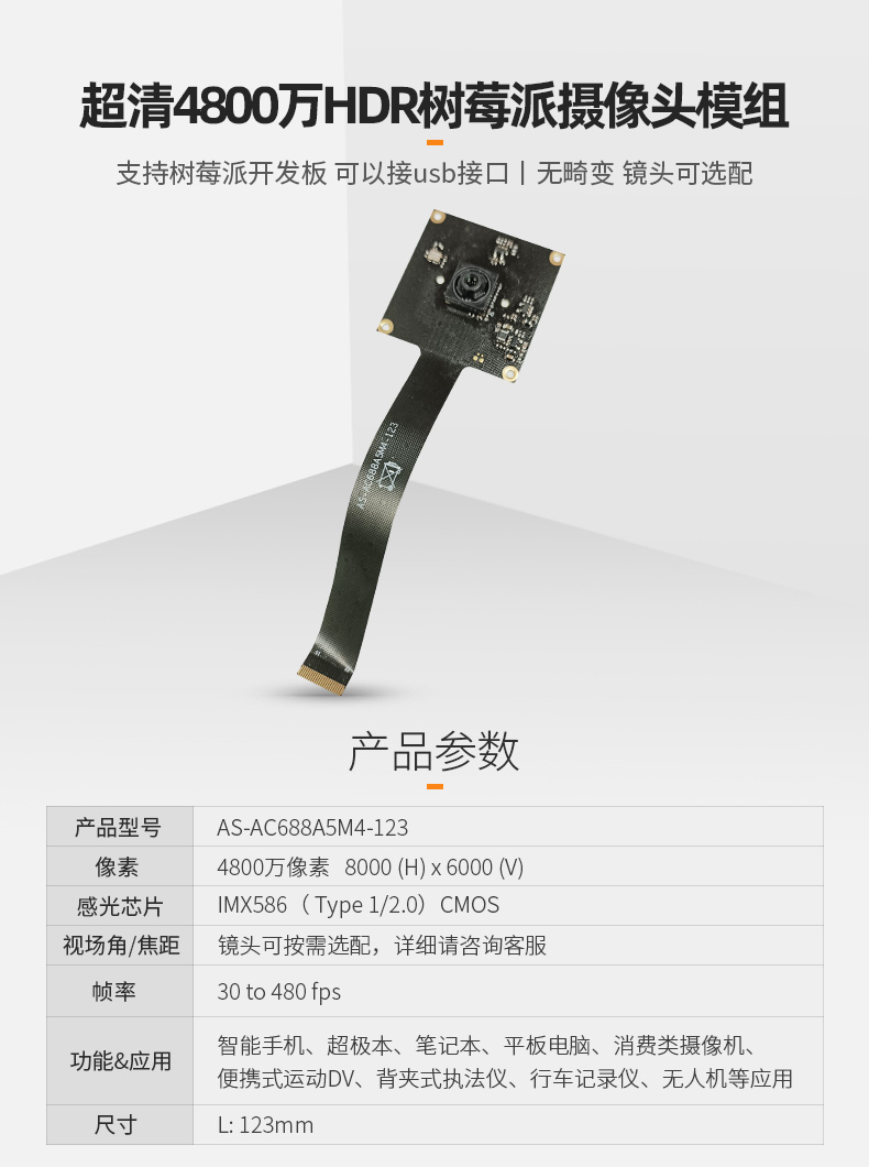 4800万像素高拍仪文档拍摄4K高清树莓派摄像头IMX586 Mipi模组可接usb接口