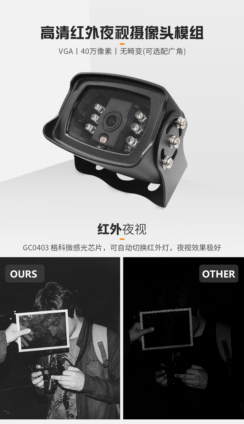 高清40万像素低照度红外夜视GC0403监控防水防尘外壳大货车后视摄像头免驱模组
