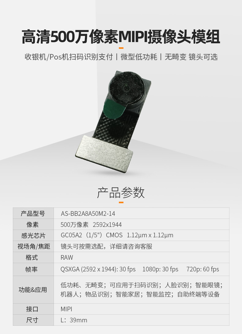 高清500万30帧微型低功耗智能手表拍照录像摄像头模组GC05A2 Mipi Fpc模块