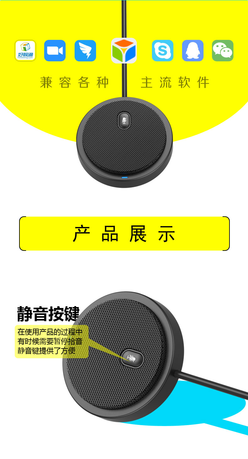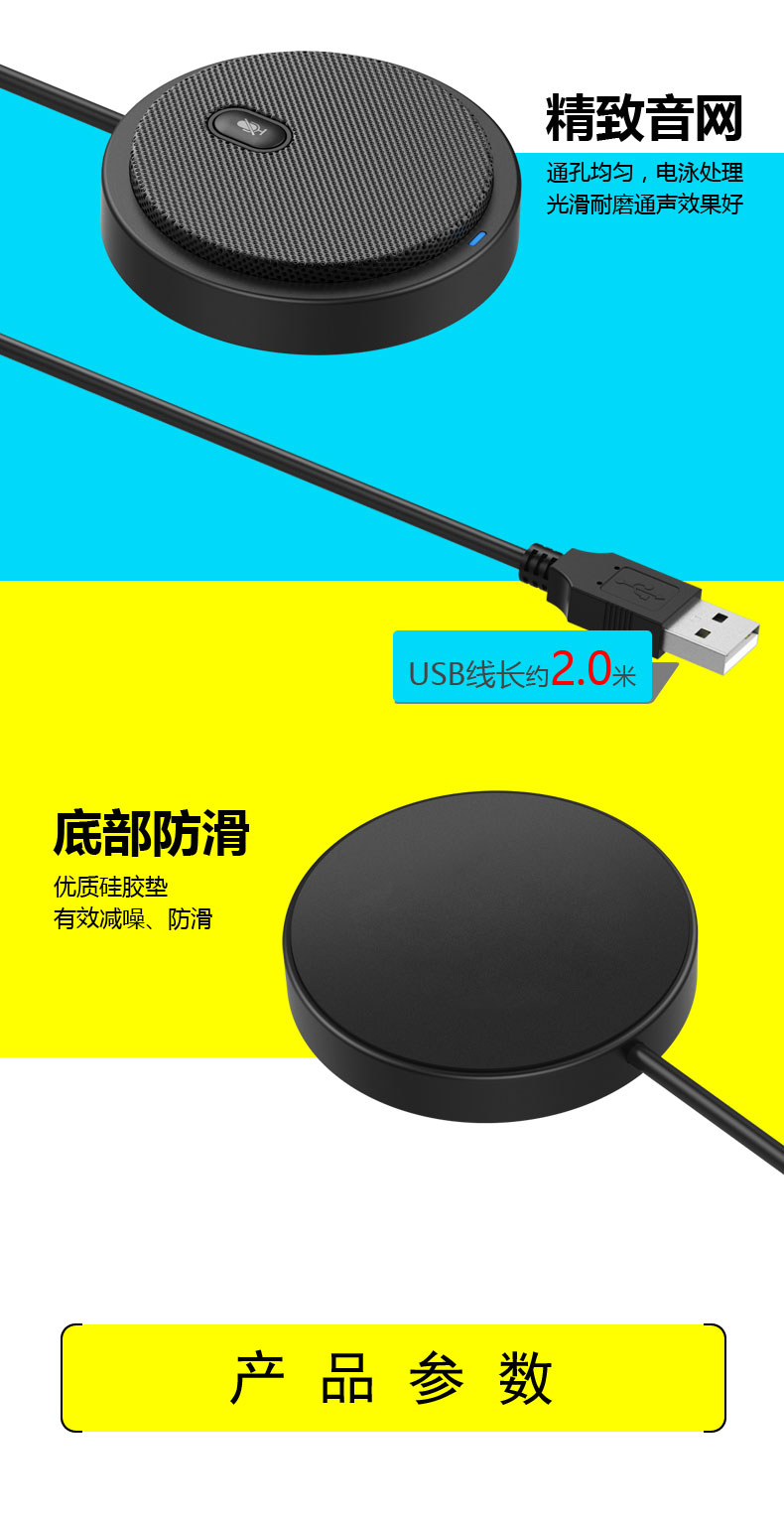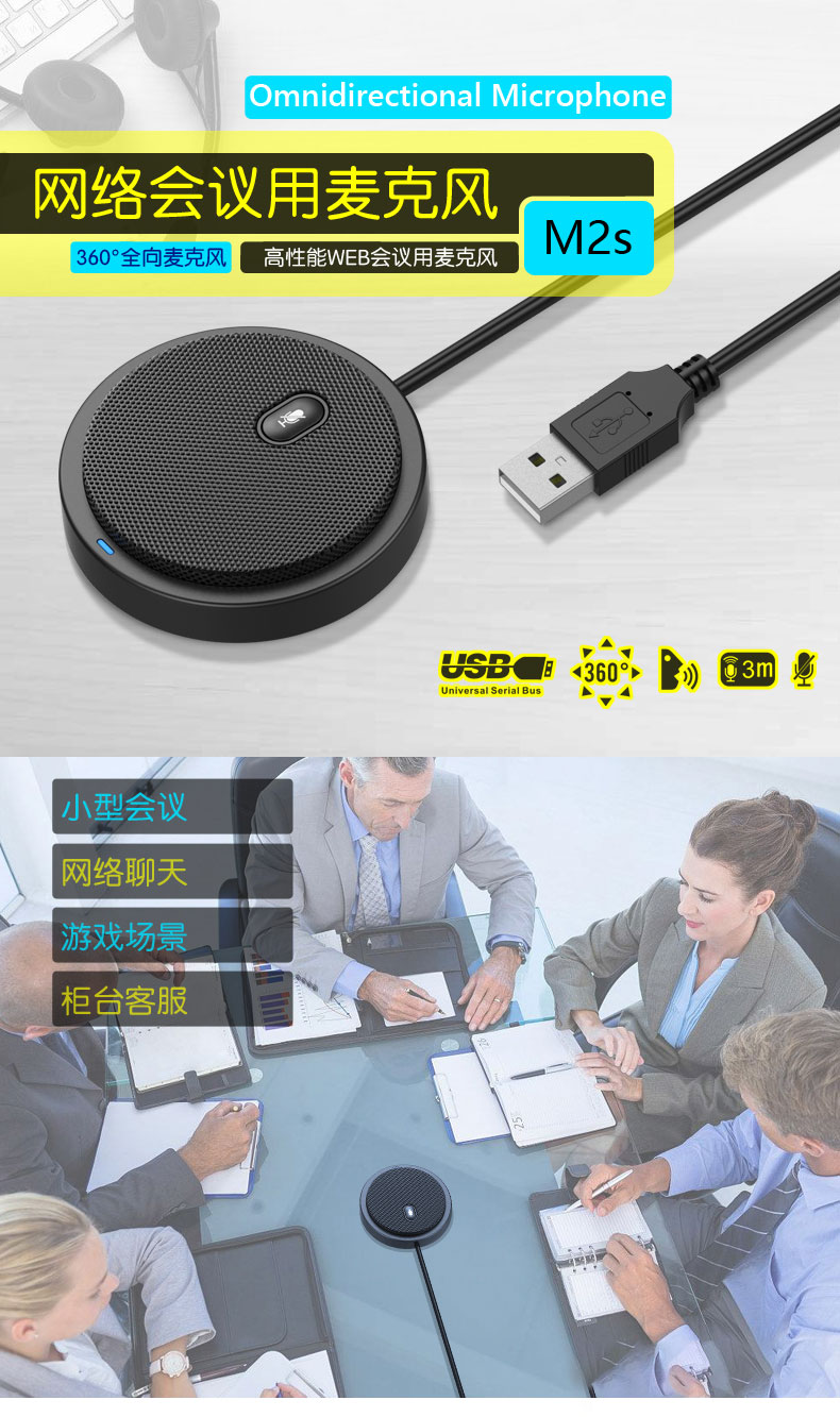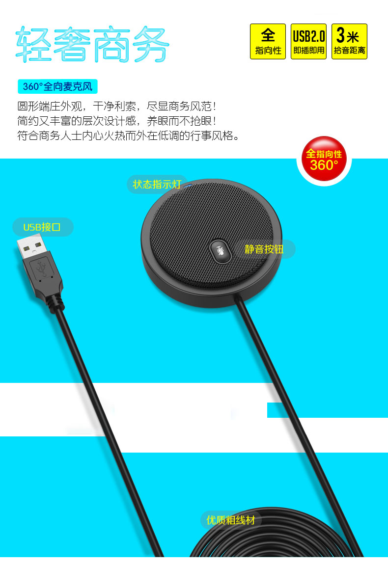 360度全向麦克风AI降噪3米远距拾音多人会议音频聊天USB即插即用Window MAC