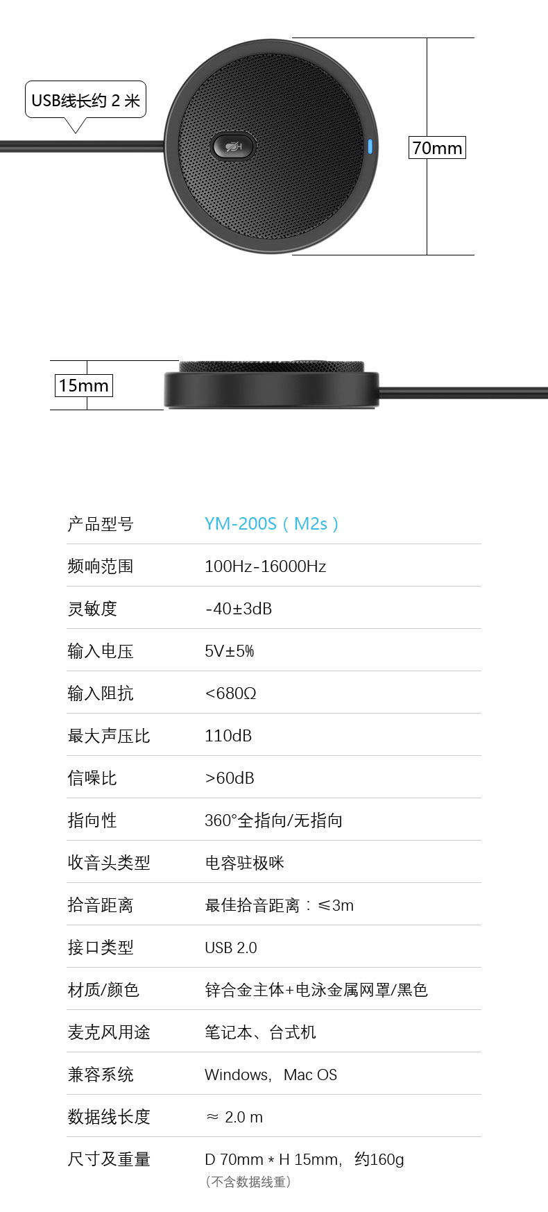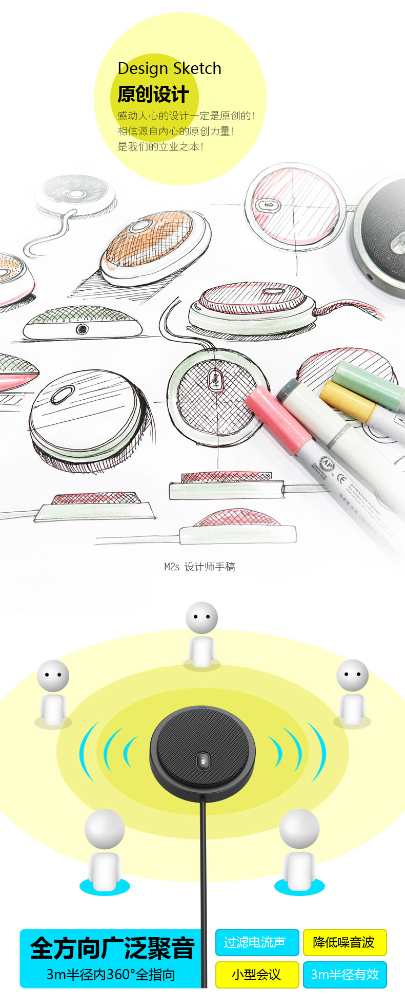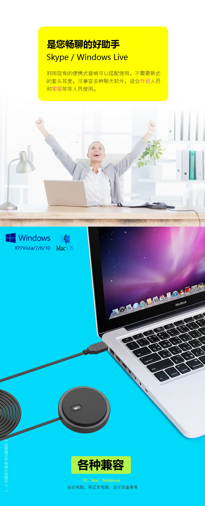 360度全向麦克风AI降噪3米远距拾音多人会议音频聊天USB即插即用Window MAC