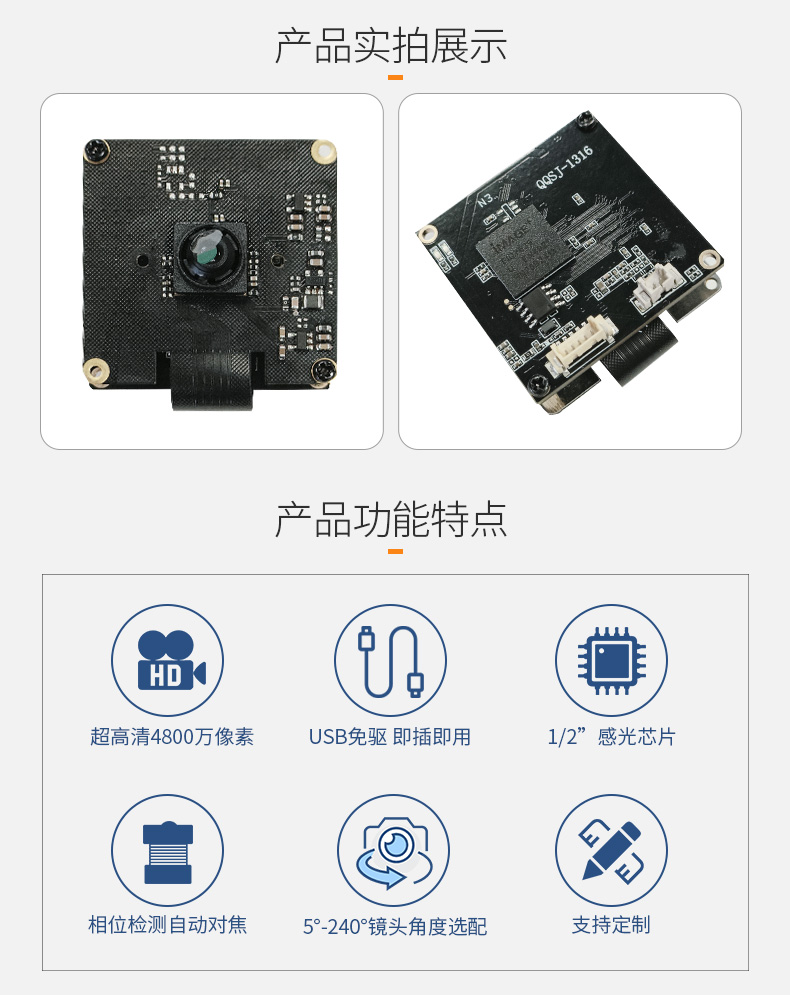 4800万像素8000x6000超清标签文字识别8K USB机器人医疗影像摄像头模组