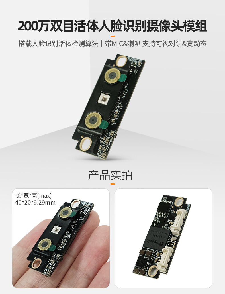 RGB+IR双目可视对讲门锁门铃摄像头200万宽动态活体人脸识别带AI算法模组