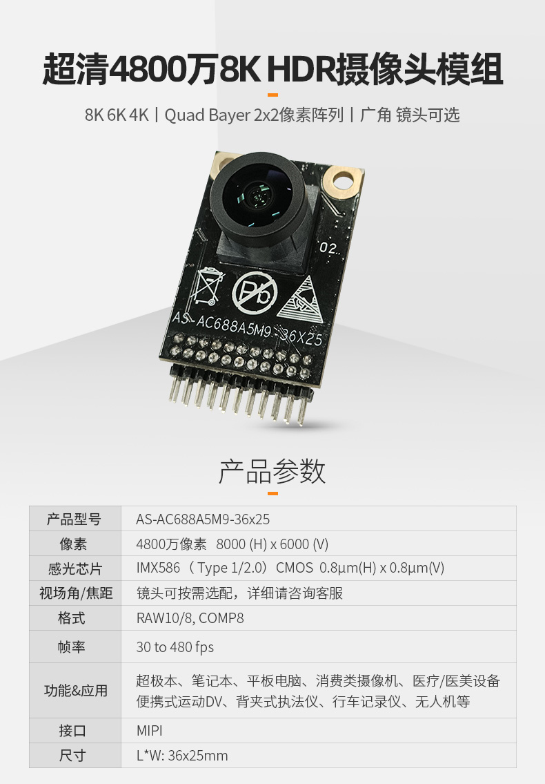 超清8K6K无人机摄像头模组4800万IMX586 30-480fps广角高帧率Mipi