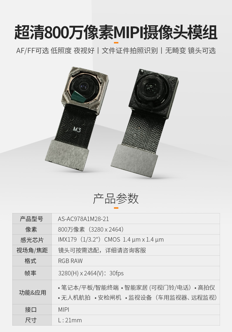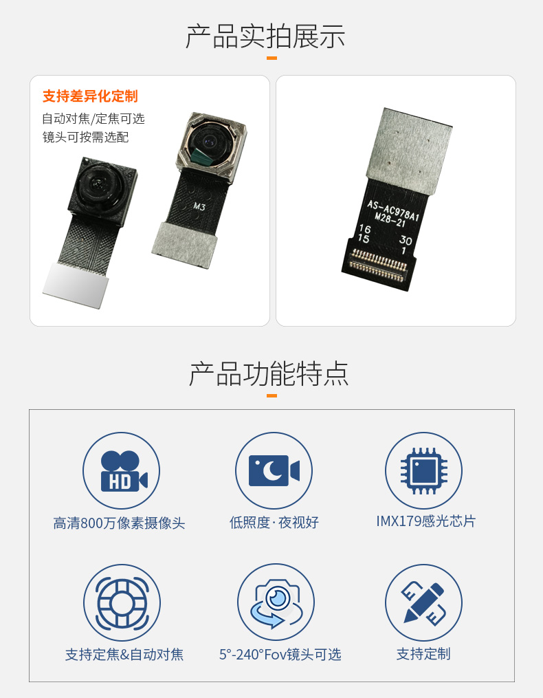 800万像素IMX179低照度微型摄像头模组工业管道探测摄像头FF定焦/AF自动对焦