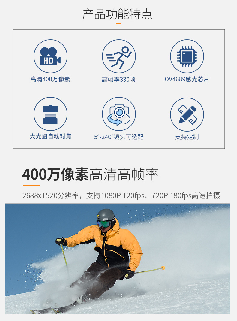 400万像素人脸识别低畸变形OV4689高清高帧率Mipi车载摄像头模组