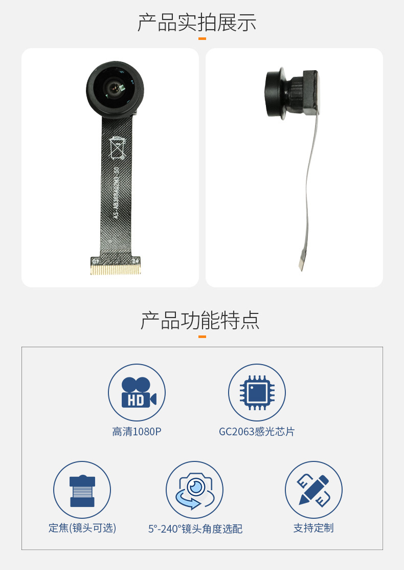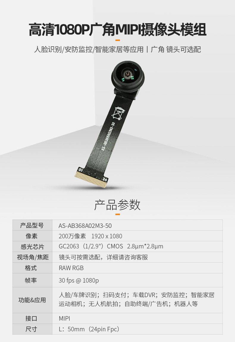 深圳厂家直销200万高清人脸识别GC2063广角Mipi 24pin模组AIoT摄像头模块1080P