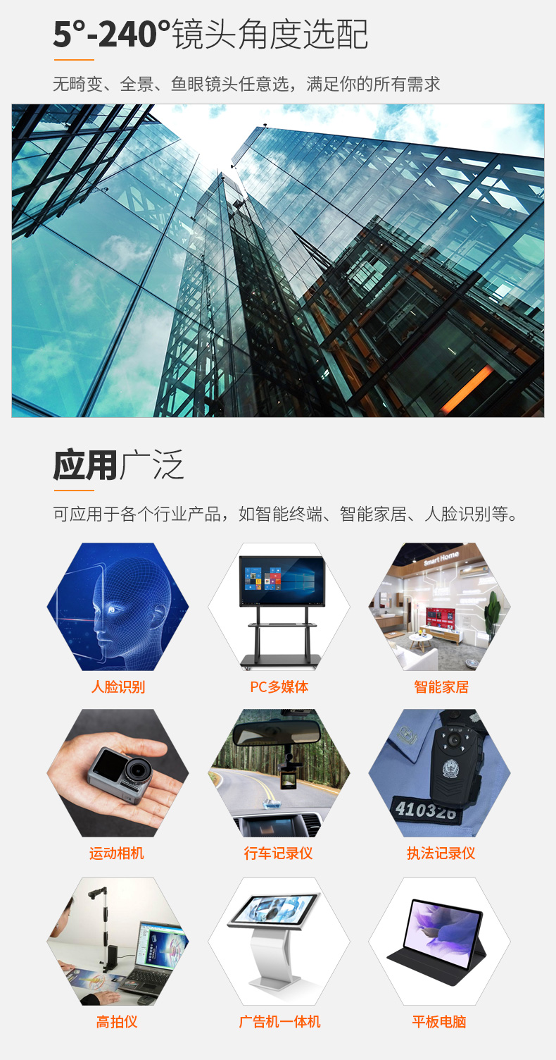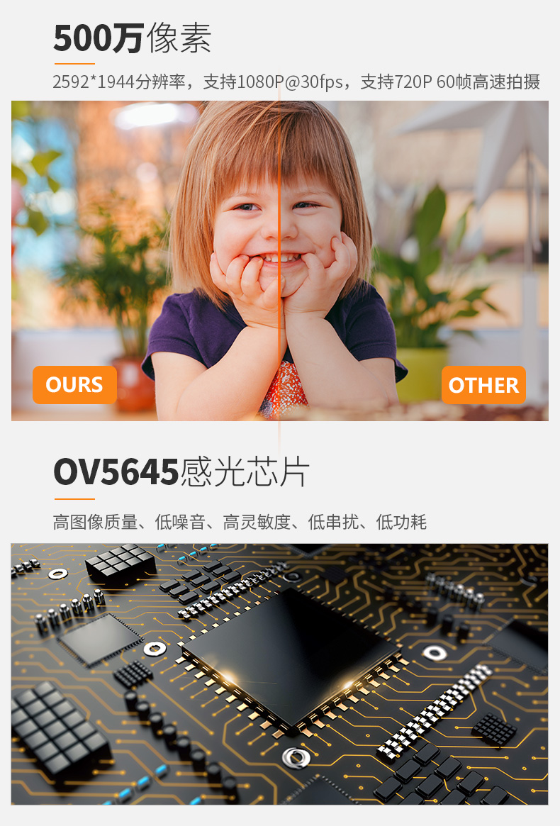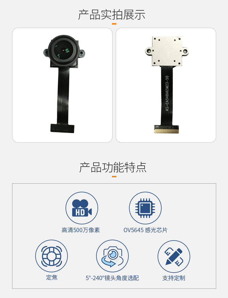 高清广角FF定焦500w像素高拍仪2K YUV输出OV5645摄像头模组Mipi接口