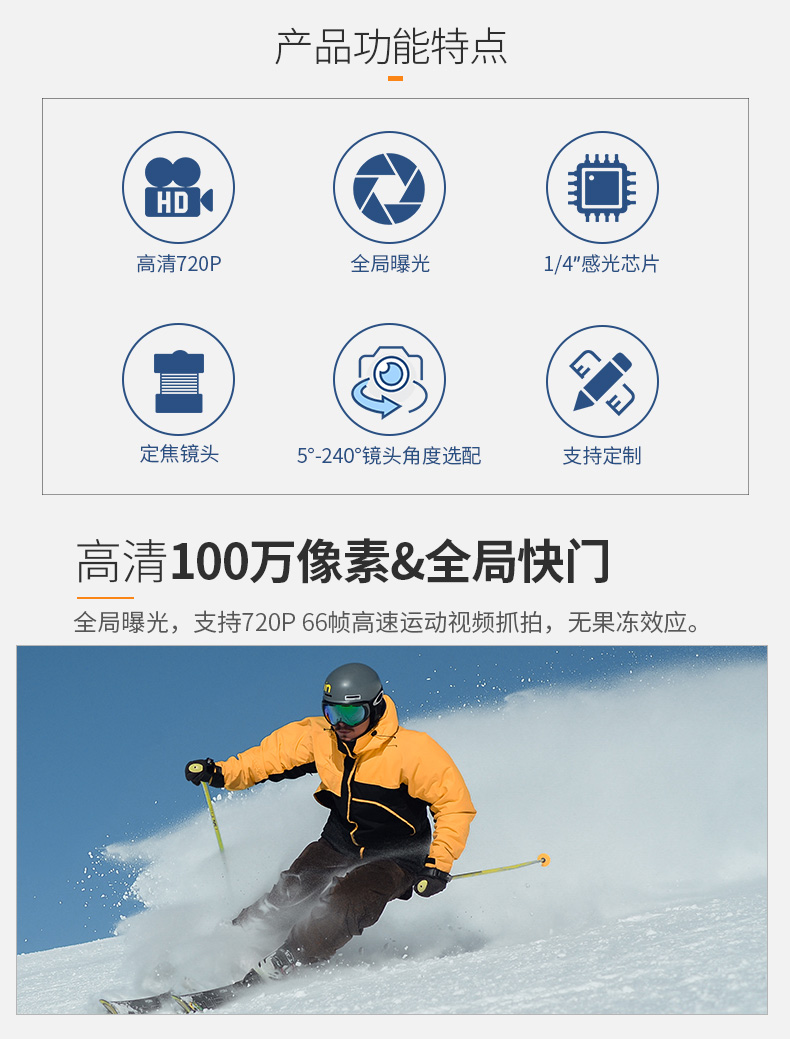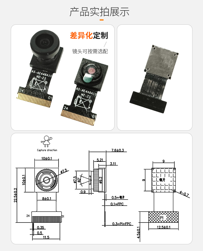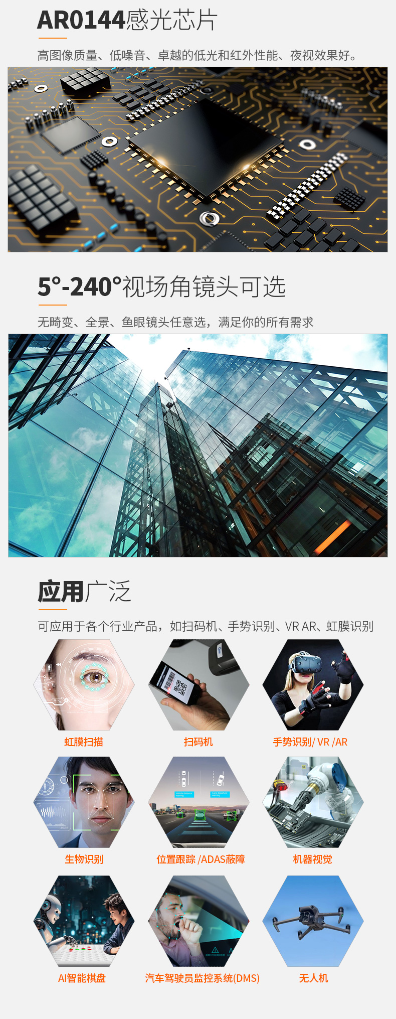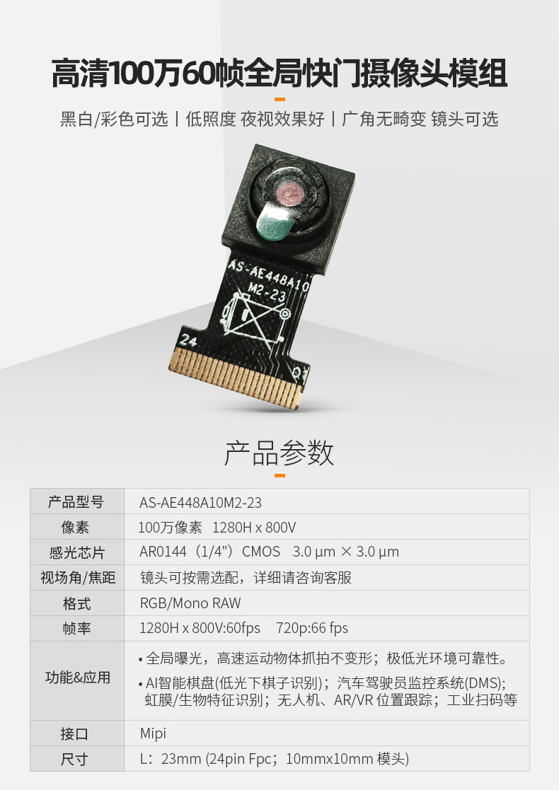 泓嘉影像720P夜间高清监控AR0144全局快门Mipi-24pin摄像头模组AI智能棋盘